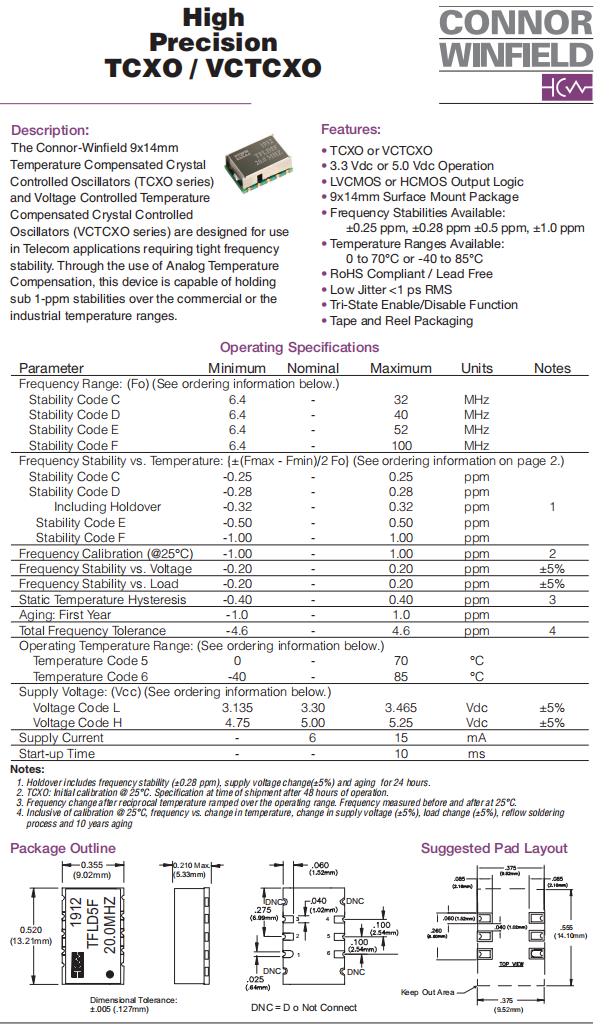 | XM-1-018.432M | Connor-Winfield | XM-1 | 18.432MHz | ±50ppm | ±50ppm | 16pF | 40 Ohm | -10°C ~ 60°C |