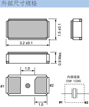 本產品的輸出頻率為32.768 kHz,尺寸為3.2×1.5 mm、t=0.9 mm Max.,頻率公差為±20×10-6,并使工作溫度范圍達到了-40~+125 ℃。將于2010年1月起批量生產,樣品價格預定為300日元。