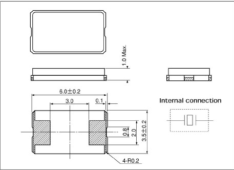 小型表面貼片型晶體諧振器,特別適用于有小型化要求的市場領域、小型、薄型優良的耐環境特性,包括耐熱性、耐沖擊性等、在移動通信領域可發揮優良的電氣特性、滿足無鉛焊接的回流溫度曲線要求。