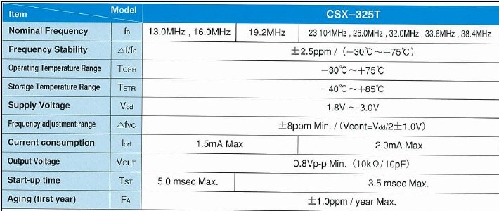 西鐵城溫補(bǔ)晶振,CSX-325T,壓控晶振